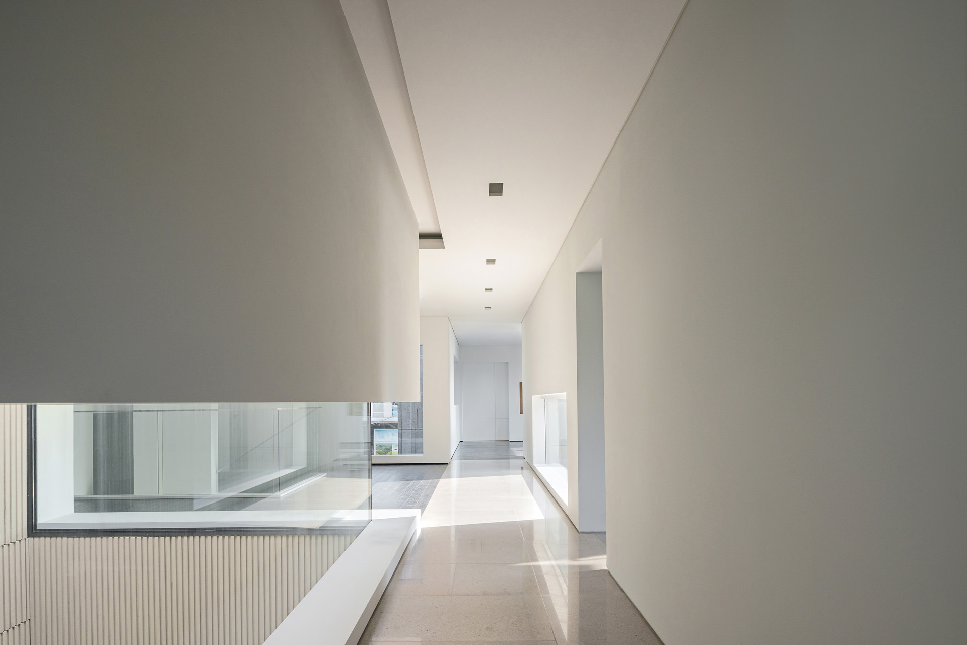 더플랫 스튜디오의 2층은 2개의 메인룸과 1층과 루프탑을 잇는 홀웨이로 구성되어 있습니다. 2개의 메인룸은 각각 용산과 남산타워의 시티뷰를 담고 있습니다. 심플하면서도 입체적인 공간감이 인상적인 홀웨이에서도 다양한 공간 활용이 가능합니다.